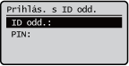 Keď nie je implementovaná správa ID oddeleniaKeď sú nastavené iba ID správcu systému a kód PIN bez správy ID oddelenia, do zariadenia je potrebné sa prihlásiť iba vtedy, keď chcete konfigurovať nastavenia, ktoré vyžadujú oprávnenia správcu. Zadajte ID a kód PIN v položkách <ID správcu systému> a <Kód PIN správcu syst.> a stlačte tlačidlo