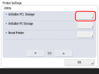 The storage cannot be initialized in the following conditions: When print data is being received or printed. (It is recommended that you remove the cable connecting the machine to the hub, so it does not receive print data.) When fonts are being installed or uninstalled. The steps explained below are for initializing the PCL storage area. To initialize the PS storage area, follow the same steps, except that for step 4, select [Initialize PS Storage]. |