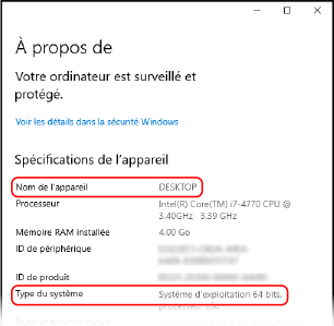 Si l'ordinateur est équipé d'un système d'exploitation de 64 bits, « Système d'exploitation 64 bits » est affiché.