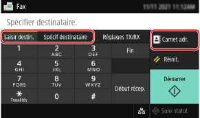 Indiquez le destinataire dans l'onglet [Saisir destin.], l'onglet [Spécif destinataire] ou dans [Carnet adr.].