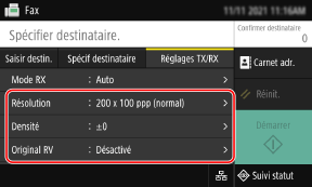 Dans l'onglet [Réglages TX/RX], configurez les paramètres pour la numérisation de l'original.