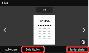 Wenn es Seiten gibt, die Sie nicht senden möchten, öffnen Sie die Seite, und drücken Sie [Seite löschen].