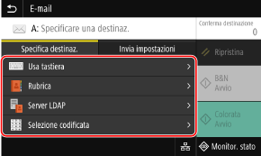 Se la destinazione per l'invio è limitata per via delle impostazioni di autenticazione della funzione Invio, non è consentito specificare un'altra destinazione. Per dettagli, contattare l'amministratore.