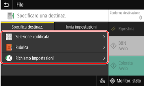 Se la destinazione per l'invio è limitata per via delle impostazioni di autenticazione della funzione Invio, non è consentito specificare un'altra destinazione. Per dettagli, contattare l'amministratore.