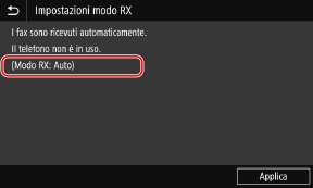 Una volta comparso il messaggio [Impostazioni configurate.], viene visualizzata la schermata [Impostazioni modo RX].