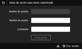 Si está configurado el envío con autenticación (autenticación del servidor LDAP), aparece la pantalla de inicio de sesión para el envío con autenticación al realizar las operaciones de escaneado y fax. Introduzca el nombre de usuario y la contraseña gestionados con el servidor LDAP para iniciar sesión.