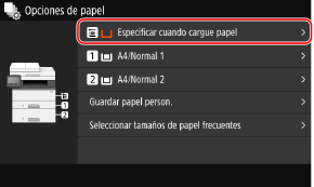 Pulse [Especificar cuando cargue papel]. No es necesario realizar el paso 4.