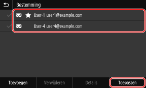 Selecteer de selectievakjes van de bestemmingen die u aan de groep wilt toevoegen, en druk op [Toepassen].