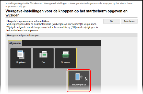 Als u de weergave-volgorde wilt veranderen door de knoppen te verslepen, klikt u op [Bewerken in knopweergave].