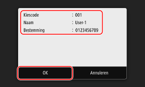 Voer een driecijferig nummer voor Verkort kiezen in.