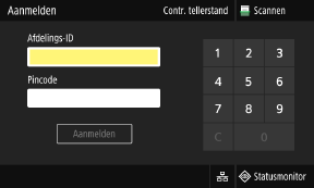 Als het Beheer afdelings-id is ingesteld, verschijnt het volgende inlogscherm. Voer het Afdelings-id in om in te loggen. Als er een pincode is ingesteld, voer die dan in.