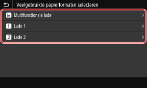 Het scherm met papierinstellingen toont de geregistreerde veelgebruikte papierformaten. Als ongebruikte papierformaten worden weergegeven, kunt u deze verbergen voor iedere papierbron, zodat het selecteren van een papierformaat makkelijker gaat.