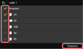 Maak het selectievakje van de te verbergen papierformaten leeg en klik op [Toepassen].