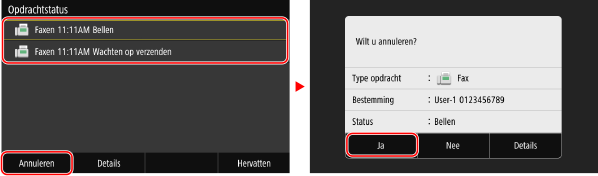 Als een scherm met de taaklijst verschijnt, selecteer dan de taak die u wilt annuleren, en druk op [Annuleren]