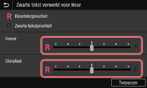 In [Invoer] of [Glasplaat] maakt u de aanpassing met prioriteit voor hetzij gekleurde tekst hetzij zwarte tekst.