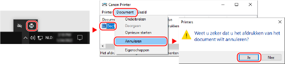 Als het printerpictogram niet verschijnt in het Windows systeemvak of als het te annuleren document niet verschijnt, worden de afdrukgegevens eerst op de computer bewerkt en dan naar het apparaat verzonden.