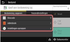 Als de bestemming bij het verzenden onderhevig is aan beperkingen als gevolg van de Functie Verificatie-instellingen voor Verzenden, kunt u geen andere bestemming opgeven. Voor details neemt u contact op met de beheerder.