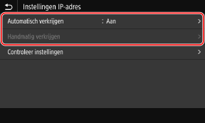 1 | Druk op [Automatisch verkrijgen]. Het scherm [Instell. IP-adres (Autom. verkrijgen)] verschijnt. |