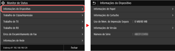 Quando toca no nome ou no botão de um item, pode selecioná-lo. Aparece o ecrã selecionado ou a função selecionada é executada.