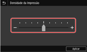 Toque nos botões [+] e [-] para ajustar o valor. Quando o cursor for apresentado, conforme indicado abaixo, pode arrastá-lo para a esquerda ou direita para ajustar o valor.