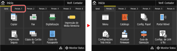 Quando toca num separador, aparece o ecrã do separador selecionado.