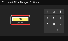 Aparece o ecrã [Inserir Nº de Discagem Codificada].