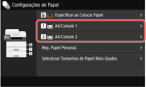 Pode alterar o tipo de papel apresentado no ecrã no passo 3. Ocultar tamanhos de papel não utilizados