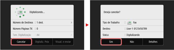 Pode cancelar o envio de um fax seguindo as instruções no ecrã.