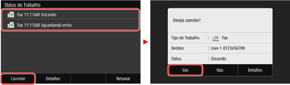 Se for apresentado um ecrã da lista de trabalhos, selecione o trabalho que pretende cancelar e prima [Cancelar]
