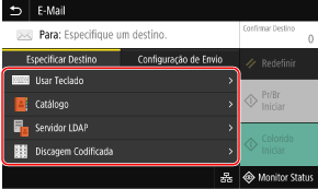 Utilize [Catálogo] ou [Discagem Codificada] para especificar os destinos Cc e Bcc.