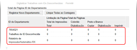Aparece o ecrã [Gerenciamento de ID de Departamento].