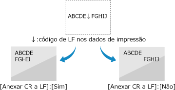 Se selecionar [Não], a posição de impressão é deslocada para a linha seguinte, logo abaixo do código LF recebido.