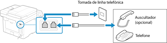 Ligue o cabo telefónico fornecido à tomada de linha telefónica (LINE) na máquina e à tomada de linha telefónica na parede.