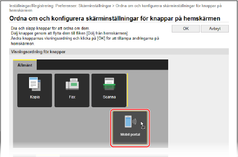 Klicka på [Redigera i knappvy] när du vill ändra visningsordningen genom att dra knapparna.