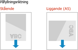 När du fyller på papper med logotyp ska du vara särskilt uppmärksam på orienteringen och vilken sida som vänds uppåt.