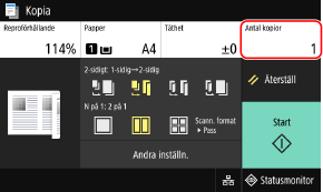 Tryck på [Antal kopior] och använd sifferknapparna för att ange antalet kopior och tryck sedan på [Avsluta].