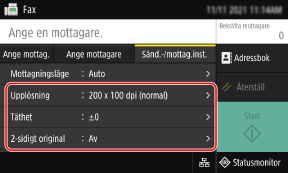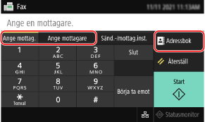 Ange mottagaren på fliken [Ange mottag.], [Ange mottagare] eller [Adressbok]. Ange mottagare