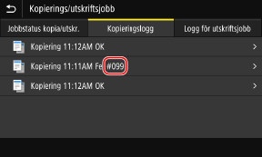 Om det inte går att skriva ut, om skannade data eller fax inte kan tas emot eller skickas eller om något annat fel inträffar visas en felkod (tresiffrigt nummer som inleds med "#") i rapporten eller jobbloggen.