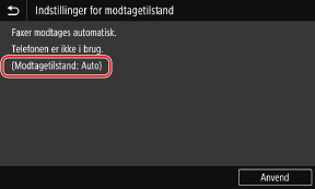 Efter meddelelsen [Indstillinger konfigureret.] vises, vises skærmen [Indstillinger for modtagetilstand].
