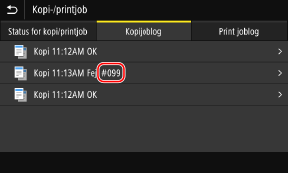 Hvis udskrivningen ikke kan udføres, eller scannede data eller en fax ikke kan sendes eller modtages, eller der opstår en anden fejl, vises der en fejlkode (et trecifret tal, der starter med "#") i rapporten eller jobloggen.