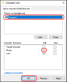2 | Kohdassa [Käyttäjät] valitse [Kaikki]  [Luku ja kirjoitus]. |