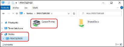 Jaetun tulostimen näyttäminen tulostuspalvelimessa