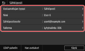 Jos käytetään LDAP-palvelinta, rekisteröi kohteiden hakuun käytettävä LDAP-palvelin laitteeseen. LDAP-palvelinten tallentaminen |