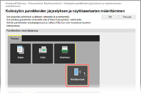 Jos haluat muuttaa näyttöjärjestystä vetämällä painikkeita, napsauta [Muokkaa painikenäkymässä].