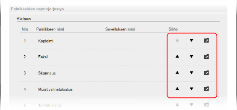 Painikkeiden näyttöjärjestyksen muuttaminen