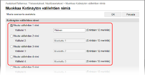 [Muokkaa Kotinäytön välilehtien nimiä] -näyttö tulee esiin.