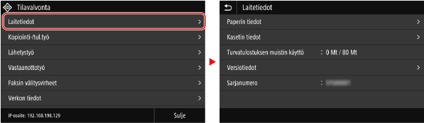 Jos napautat kohteen nimeä tai painiketta, kohde voidaan valita. Valittu näyttö tulee esiin, tai valittu toiminto suoritetaan.