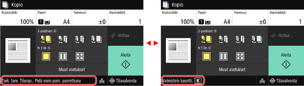 ]. Oletusarvoisesti [Koti]-näyttö tulee esiin virran kytkemisen jälkeen ja heti, kun käynnistysnäyttö on sulkeutunut, ja heti kirjautumisen jälkeen. [Koti]-näyttö