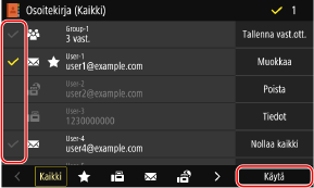 Jos kohteita määritetään avaamalla osoitekirja [Koti]-näytöstä, käytä kohdeluetteloa.
