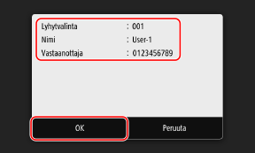 Tarkista, että vastaanottaja on oikea, ja paina sitten [OK].